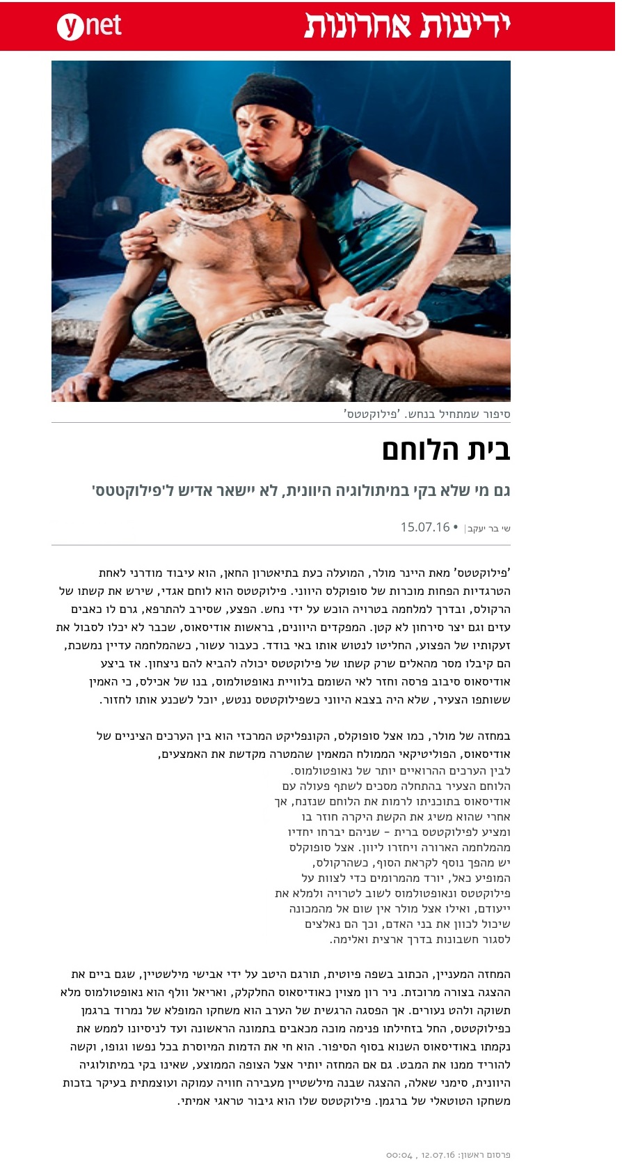 שמחים לשתף אתכם בכתבת הביקורת המלאה שהתפרסמה (יום שישי, 15.7.2016) בעיתון “ידיעות אחרונות”